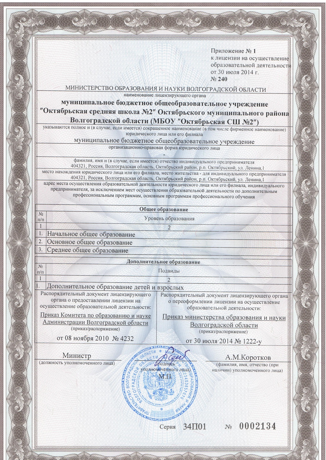 Сокращенное наименование организации: МБОУ "ОКТЯБРЬСКАЯ СШ № 2"